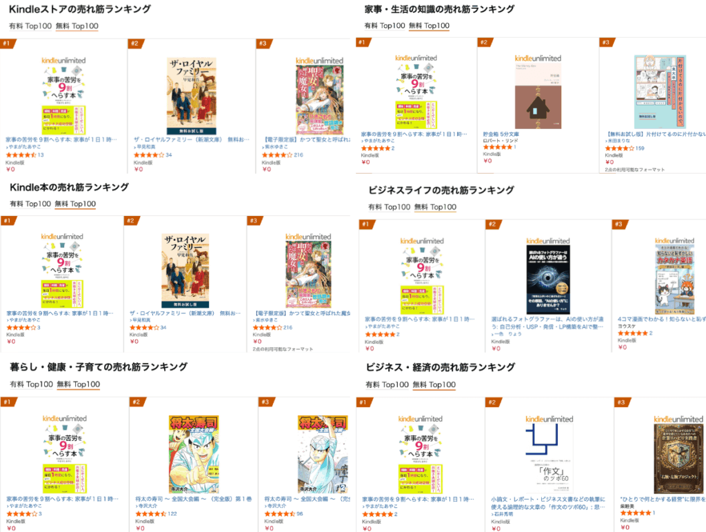 Amazon Kindleランキングで1位を獲得した部門